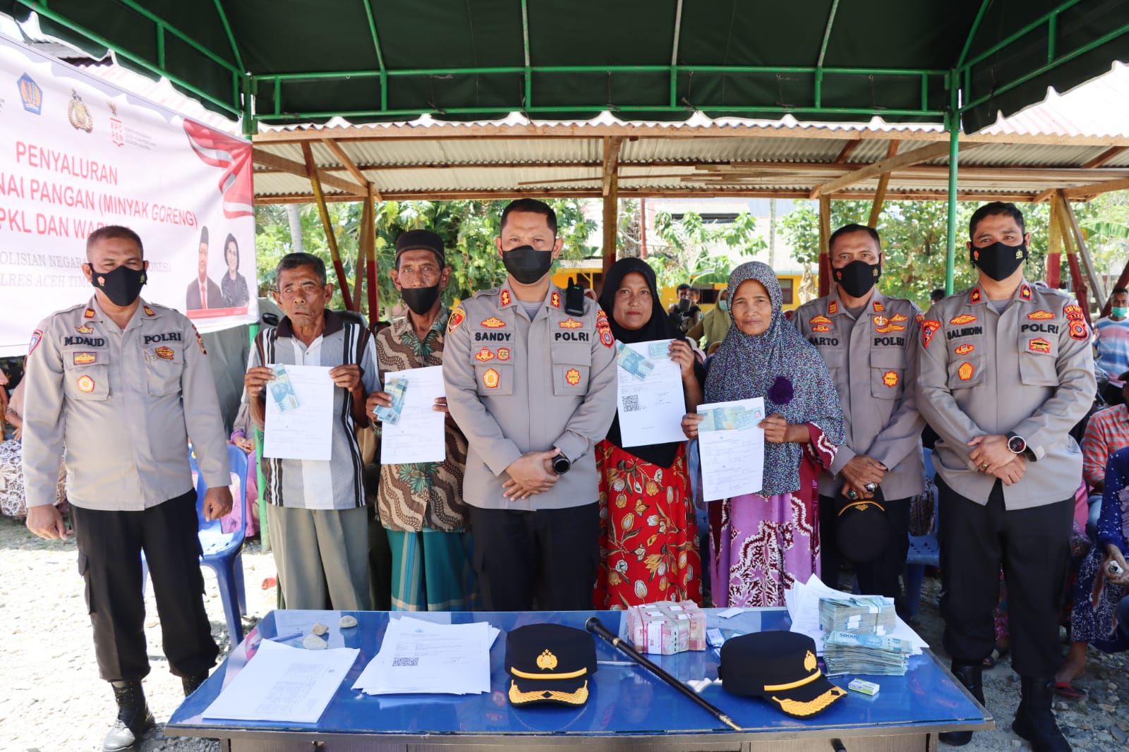 Kapolres Aceh Timur AKBP Mahmun Hari Sandy Sinurat, S.I.K. usai penyaluran secara simbolis di halaman Polsek Idi Rayeuk, mengatakan, BLT minyak goreng disalurkan dalam bentuk uang tunai. Masing-masing penerima mendapat Rp 300 ribu.