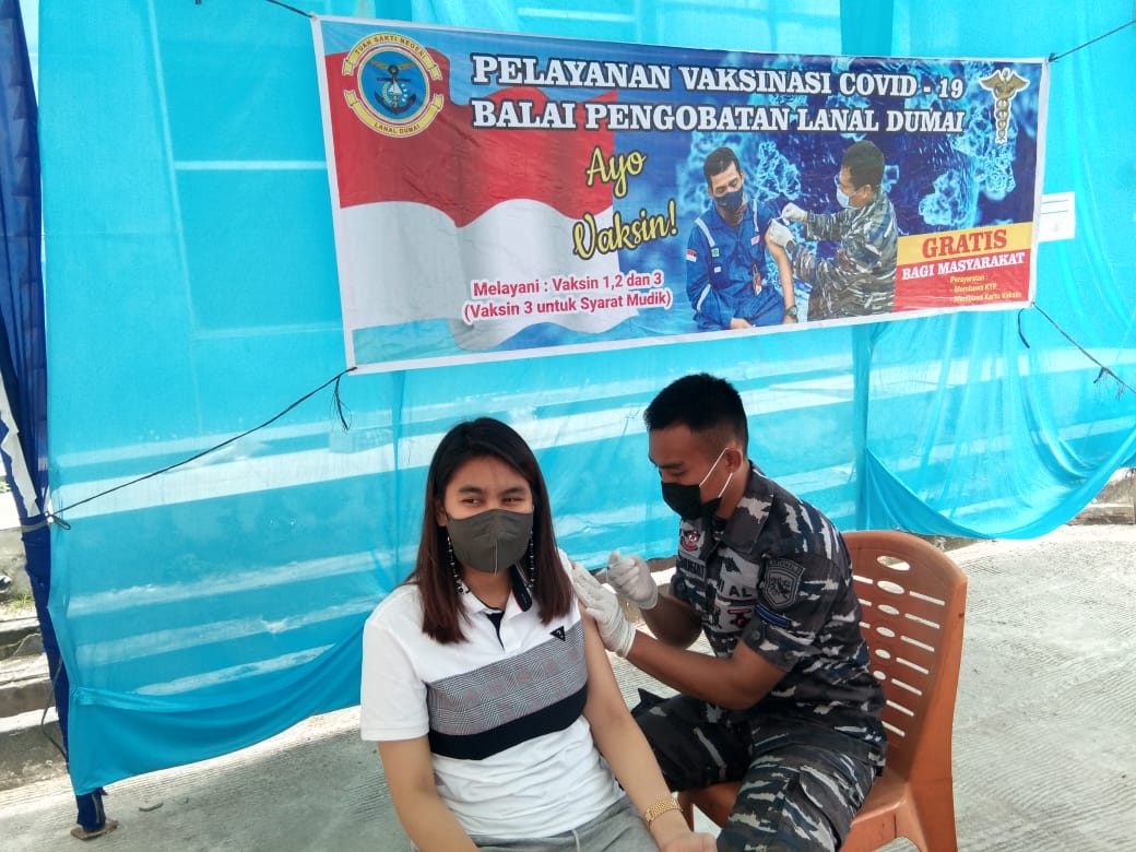 Komandan Lanal Dumai Kolonel Laut (P) Himawan, MMSMC melalui Kepala Balai Pengobatan Lanal Dumai Kapten Laut (K/W) Letty Noprita, Amd., Keb., S.K.M., mengatakan bahwa Lanal Dumai terus melaksanakan Vaksinasi Covid-19 menjelang perayaan hari Raya Idul Fitri dan mudik lebaran guna menghindari penyebaran Covid-19 selama mudik lebaran.
