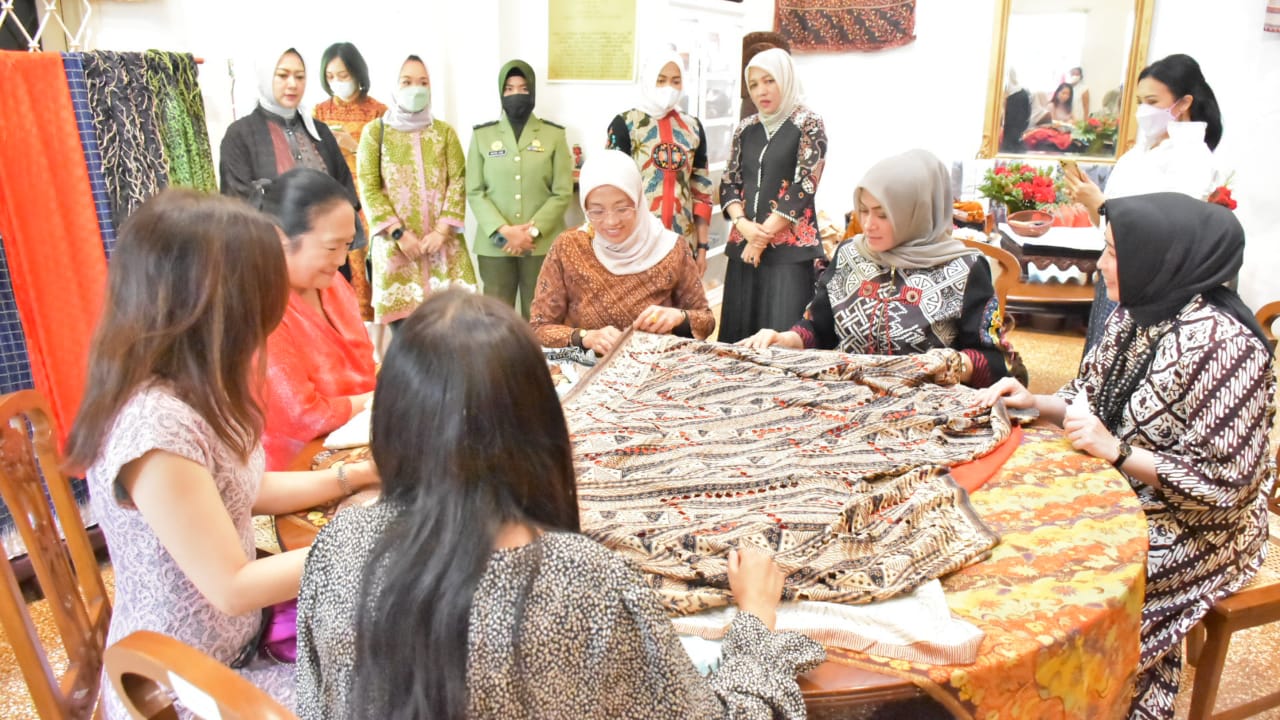 Saat menjelaskan tentang batik, ibu Kasad juga memperlihatkan beberapa produk batik yang langsung mendapat apresiasi dari Mrs. Jessica.