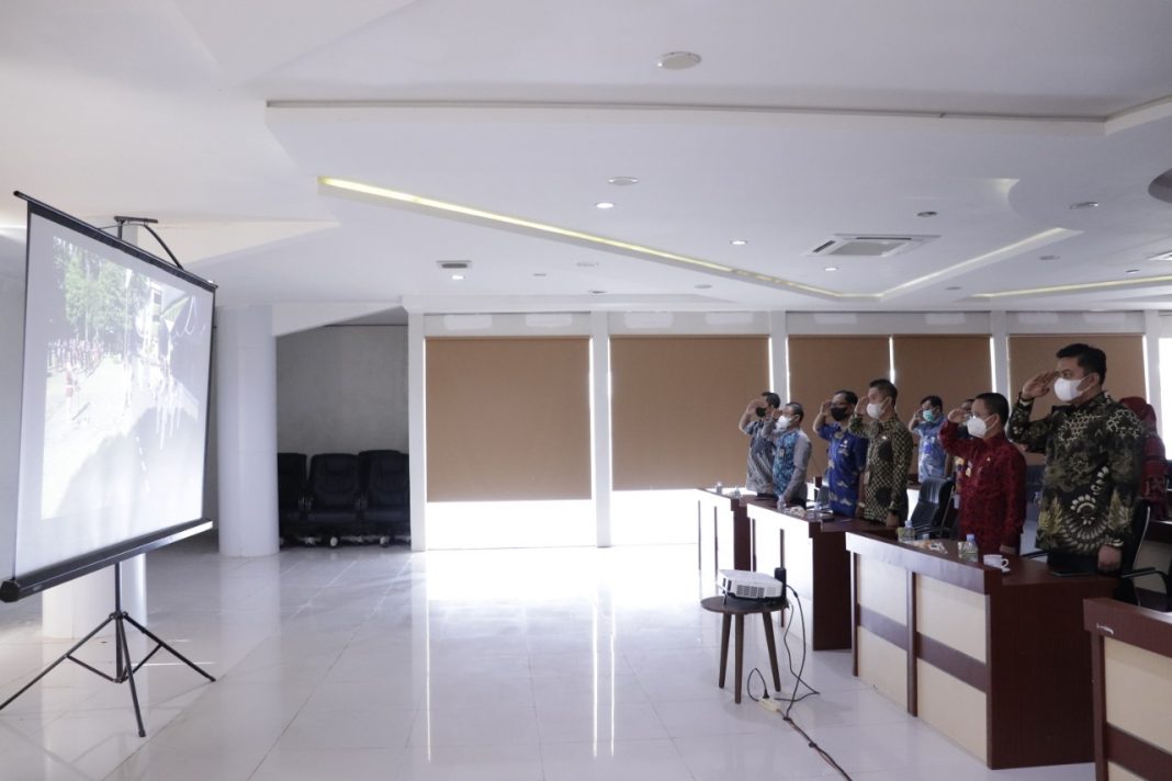 “Meski upacara Hardiknas diundur, namun tidak mengurangi rasa semangat kita untuk memperingatinya,” ujar Velli usai mengikuti upacara Hardiknas secara virtual di Ruang Rapat Utama Pemkab Way Kanan.