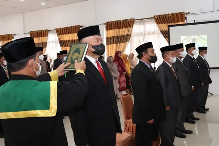 “Saudara yang dilantik dan dikukuhkan menduduki jabatan hari ini, telah disumpah untuk menjalankan tugas dan tanggungjawab selama beberapa waktu kedepan,” lanjutnya.