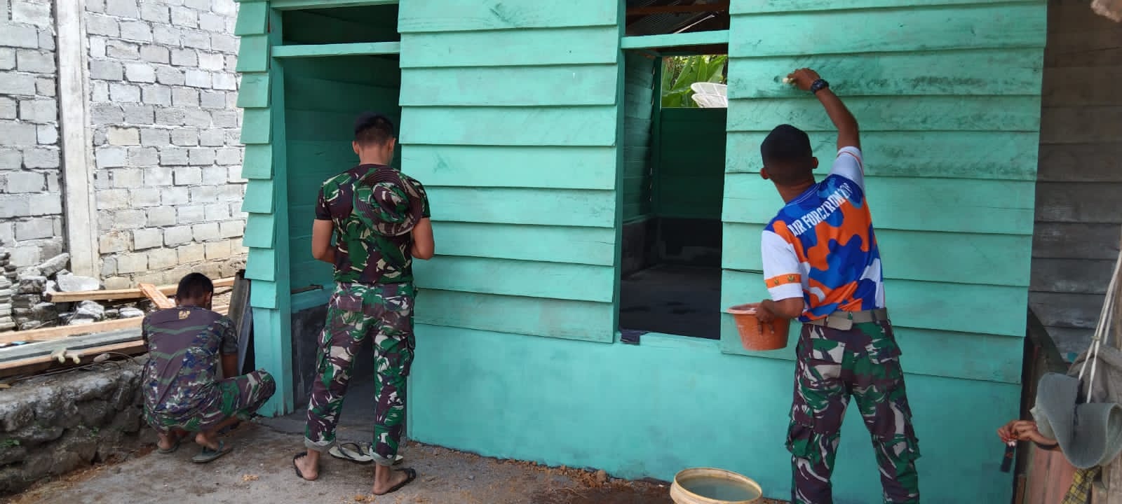 Keizalinnews.com|Redelong- Personel Yang tergabung dalam Satuan Tugas TMMD ke-113 Bener Meriah mulai finishing rumah tidak layak huni (RTLH) milik Jumadin (51) warga Desa Negeri Antara Kecamatan Pintu Rime Gayo Kabupaten Setempat. Sabtu 28/05/2022.