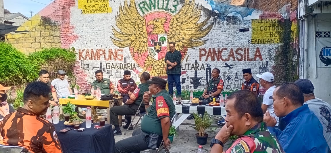 Acara Kopi Pagi yang di selenggarkan (Rabu 1/6/22) di Kampung Pancasila Jl.Delta sari Ujung Rt.07/013 Radio dalam kel.Gandaria Utara di hadiri oleh Danramil 05/Keb. Baru Mayor Inf Derma Sitorus,S.E, beserta Babinsa jajran, Ketua Ormas Pemudah Pancasila Sdr. Diki beserta anggota, dan Warga Masyarakat Kampung Pancasila.