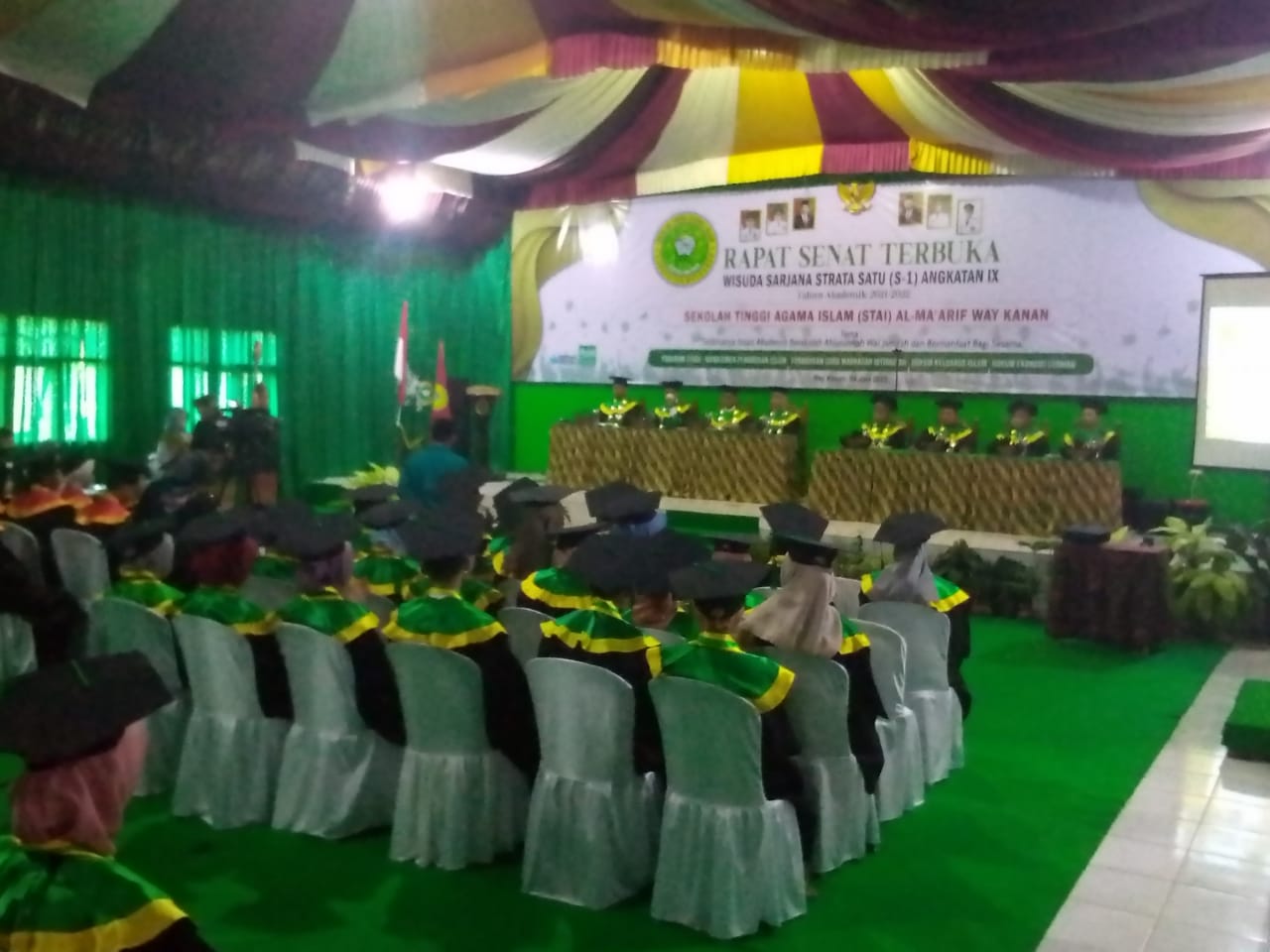 Way Kanan – Sebanyak 223 Mahasiswa atau Mahasiswi STAI AL -MA’ARIF Way kanan yang hari ini menjadi peserta, Wisudawan dan Wisudawati Angkatan ke IX Sekolah Tinggi Agama Islam tersebut yang di gelar hari ini, Sabtu ( 4/6/2022).