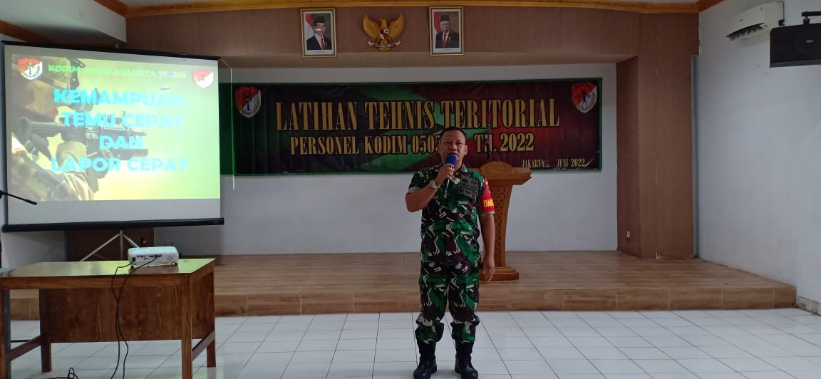 KeizalinNews.com Jakarta Timur — Untuk memelihara kemampuan dan meningkatkan profesionalisme Babinsa dalam pengetahuan teritorial, Kodim Jakarta Timur menggelar Latihan Teknis Teritorial (Latnister) di Aula Makodim, Jakarta Timur, Senin (06/06/22).