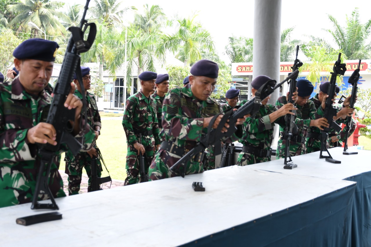 KeizalinNews.com Tanjung Balai — Untuk mencapai tingkat kesiapan Prajurit Matra Laut baik kesiapan perorangan maupun beregu dalam menggunakan peralatan dan persenjataan, Tim Kolat Koarmada I yang dipimpin Danpuslat Pasrat Letkol Marinir Hendra Zarnadi, S.Sos., M.Si., M.Tr. Opsla., menyaksikan aksi Prajurit Lanal Tanjung Balai Asahan dalam Uji Terampil Gladi Tugas Tempur (Glagaspur) Pangkalan TNI AL Tingkat P1 dan P2, di Mako Lanal Tanjung Balai Asahan, Jalan Tanjung Berombang, Asahan Mati, Kecamatan Tanjungbalai, Kabupaten Asahan, Kamis (09/06/2022).