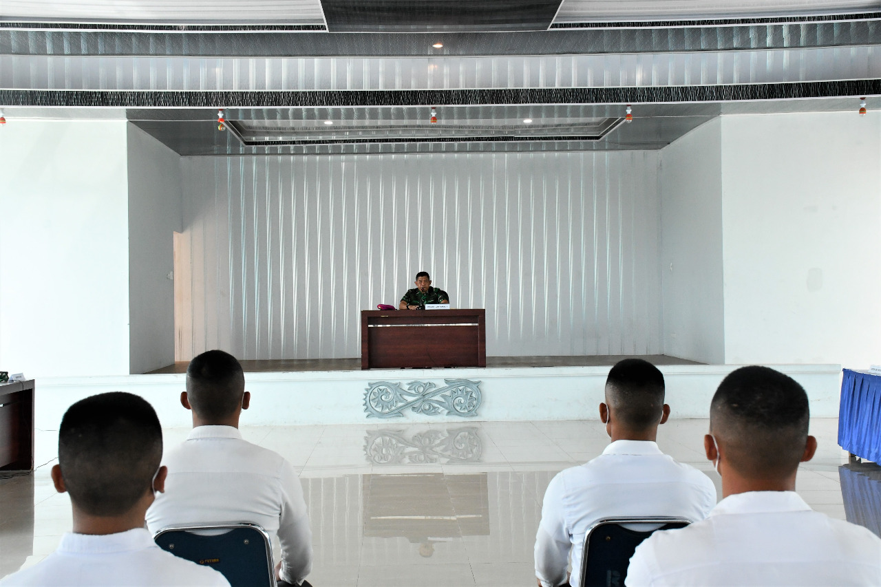 KeizalinNews.com Belawan — Wakil Danlantamal I Kolonel Marinir Amir Kasman yang mewakili Komandan Pangkala Utama TNI Angkatan Laut (Danlantamal) I Laksamana Pertama TNI Johanes Djanarko Wibowo memberikan pengarahan kepada Calon Tamtama (Cata) PK TNI Angkatan Laut Gelombang I TA 2022 sebelum diberangkatkan seleksi tingkat lanjutan, bertempat di Gedung Yos Sudarso Mako Lantamal I, Lantamal I Belawan, Jalan Serma Hanafiah Belawan, Selasa, (14/06/2022).