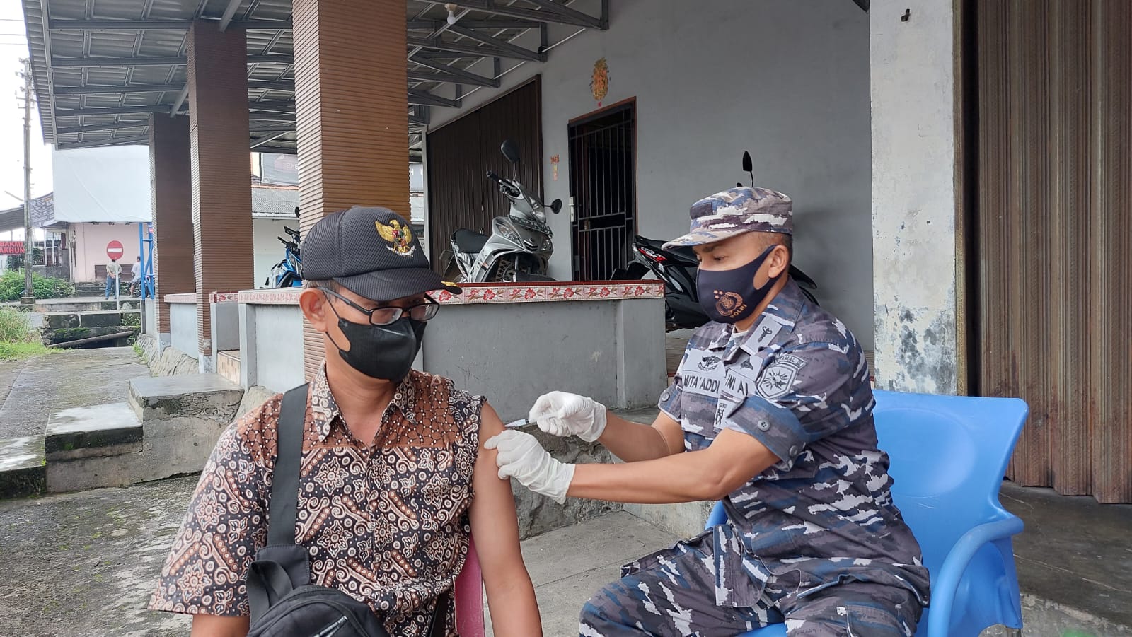 KeizalinNews.com Bangka Belitung — Terus semanngat, Nakes Lanal Bangka Belitung dalam mendukung Program serbuan Vaksinasi maritiml melalui Balai Kesehatan yang bekerjasama dengan Puskesmas Belinyu melaksanakan serbuan Vaksinasi di simpang kemplang belinyu, Kamis (16/06/2022).