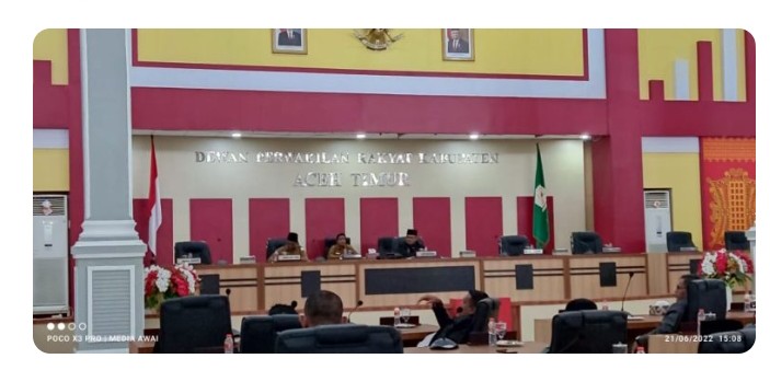 KeizalinNews ACEH TIMUR,— Dewan Perwakilan Rakyat Kabupaten (DPRK) Aceh Timur menggelar Rapat Paripurna dengan agenda “Penyampaian Hasil Pembahasan Laporan Pertanggungjawaban (LPJ) Tahun Anggaran 2021 dan Penandatanganan Keputusan DPRK untuk dijadikan Rekomendasi DPRK Aceh Timur“, Selasa (21/6/2022).