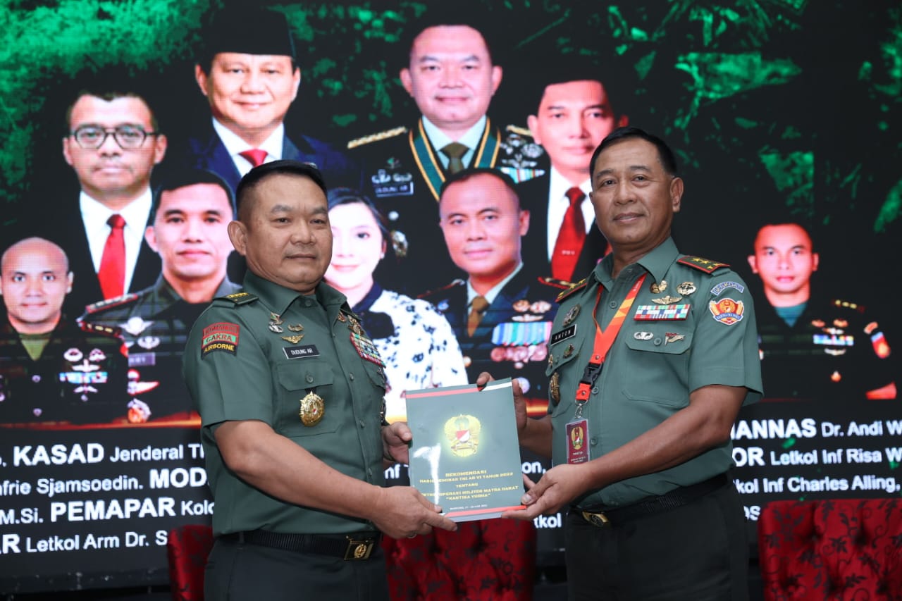 KeizalinNews.com Bandung — Kepala Staf Angkatan Darat (Kasad) Jenderal TNI Dr. Dudung Abdurachman, S.E., M.M., secara resmi menutup Seminar Nasional ke-6 TNI Angkatan Darat Tahun 2022, bertempat di Gedung Prof. Dr. Satrio Seskoad, Bandung, Selasa (28/6/2022).