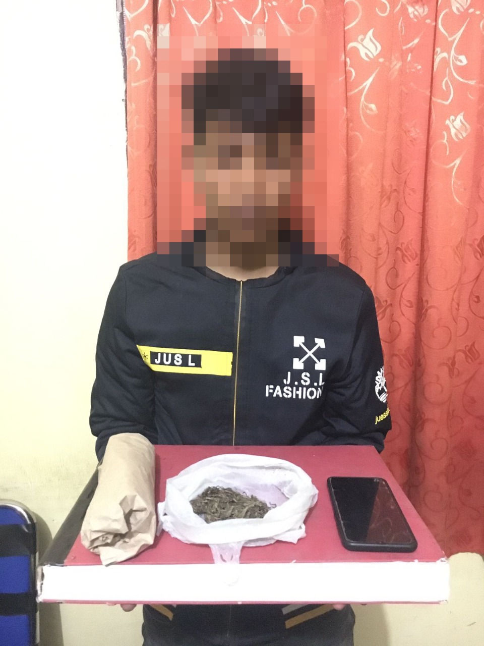 AKBP Indra Novianto menuturkan Kedua pelaku di tangkap di dua lokasi yang berbeda di Kampung yang sama. Untuk pelaku PM (28) di tangkap di rumah miliknya setelah dilakukan penggeledahan terhadap pelaku, dan dari hasil penggeledahan itu di temukan barang bukti berupa, 1( satu ) tumpukan yg di duga narkotika jenis ganja yang disimpan didalam lemari baju, 7 (tujuh) bungkus ukuran sedang dan petugas juga menemukan narkotika jenis ganja yang dibalut dengan kertas pembungkus nasi, dan 1 (satu) kantong plastik warna putih yang diduga berisikan narkotika jenis ganja, 1 (satu) kantong plastik warna biru yang di duga berisikan narkotika jenis ganja, 1 (satu) bungkus ukuran kecil yang diduga berisikan narkotika jenis ganja yang dibalut dengan kertas buku warna putih, dengan berat bruto keseluruhannya ialah 2,8 Kg.