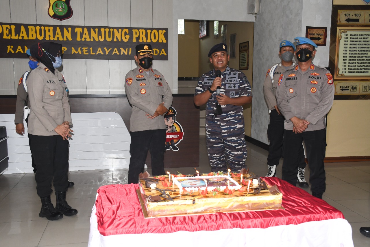 Saat dilokasi Wadan mengatakan,” Kami mewakili Komandan Lantamal III Jakarta Brigjen TNI (Mar) Umar Farouq, S.A.P., CHRMP., M.Tr.Opsla., M.Han. beserta Staff menyampaikan Selamat Ulang Tahun ke-76 Bhayangkara kepada Jajaran POLRI. Dan Kunjungan ini merupakan bentuk sinergitas antar instansi pemerintah yaitu TNI POLRI demi kemajuan dan kelancaran pelaksanaan tugas masing-masing,” pungkas Heri.