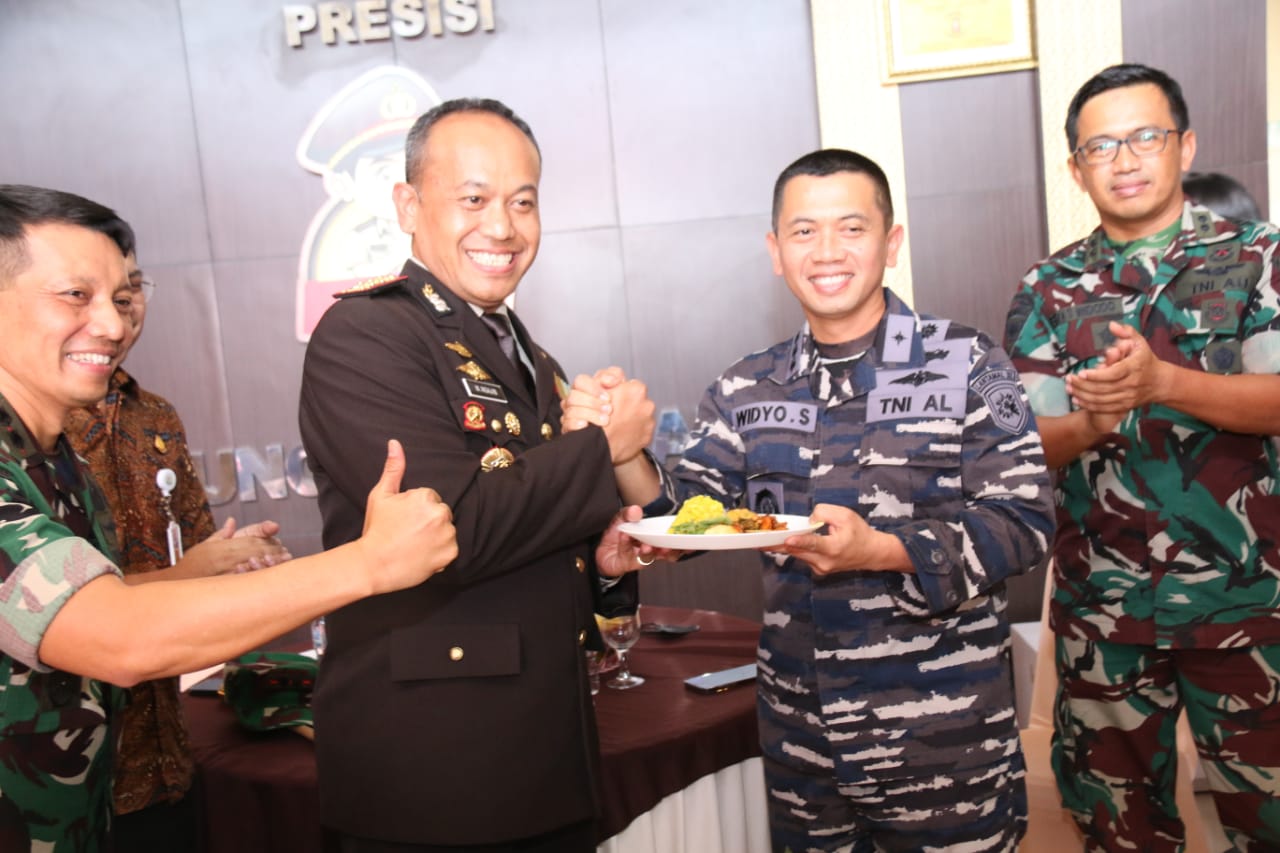 KeizalinNews.com Palembang — Komandan Lanal Palembang Kolonel Laut (P) Widyo Sasongko, S.E., M.Tr. Hanla., didampingi Perwira Staf dan seluruh Perwira Lanal Palembang secara estafet menyambangi Mako Dit Polairud Polda Sumsel, dilanjutkan ke Mako Polrestabes Palembang dan terakhir ke Mako Polda Sumsel dalam rangka memperingati Hari Ulang Tahun Bhayangkara ke-76 tahun 2022. Danlanal Palembang datang dengan membawa kue tart dan memberikan ucapan selamat.