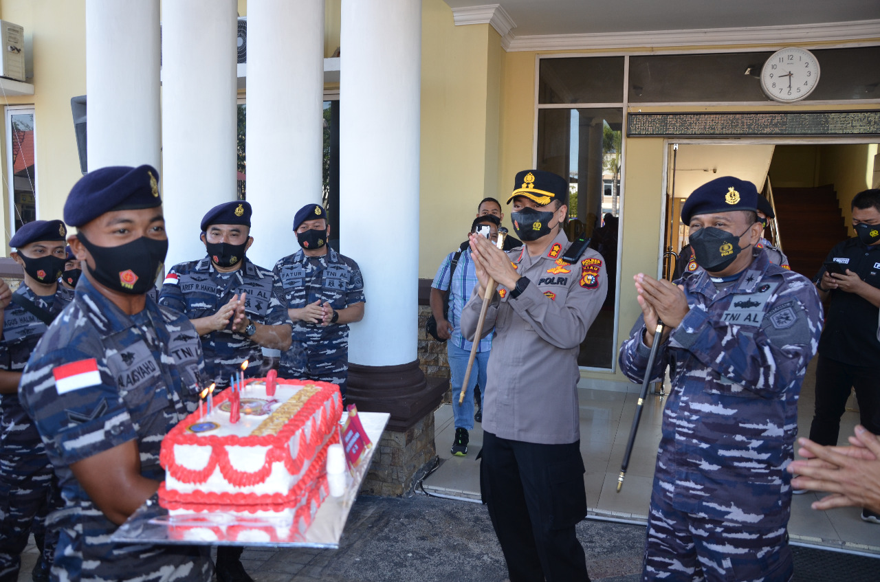 “Hal ini merupakan Perintah Pimpinan Angkatan Laut kepada seluruh Pangkalan TNI AL dimanapun berada agar wajib untuk datang memberikan ucapan Selamat Hari Bhayangkara Ke-76 kepada seluruh Instansi Polri terdekat,” terang Danlanal.