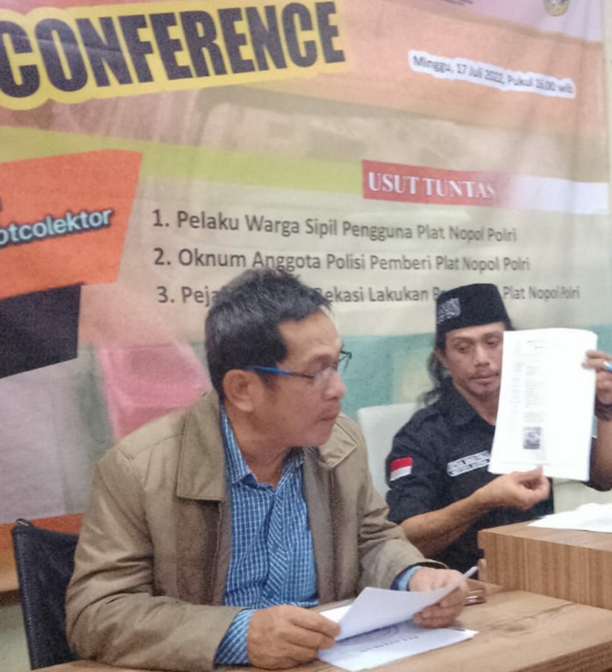 Konferensi Pers yang digelar di kantor redaksi media Mabes Bharindo yang juga sekretariat FWJ Indonesia di Setiabudi Jakarta Selatan, Minggu (17/7/2022), dia mengatakan Citra Polri akan semakin buruk jika pelaku pengguna Plat Nopol Dinas Polri dibiarkan tanpa adanya sanksi pidana.