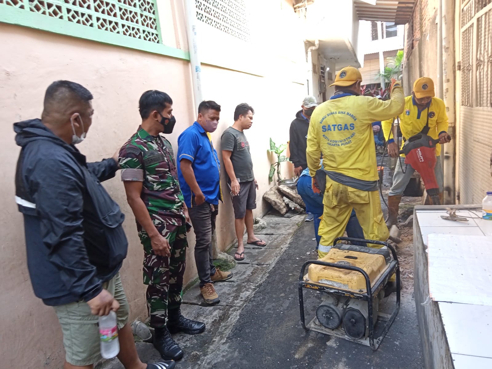 Untuk mengangkat sampah dan kotoran yang berada disaluran air, petugas melakukan pembongkaran got got warga yang terpantau tersumbat. Pembongkaran dilakukan dengan menggunakan mesin.