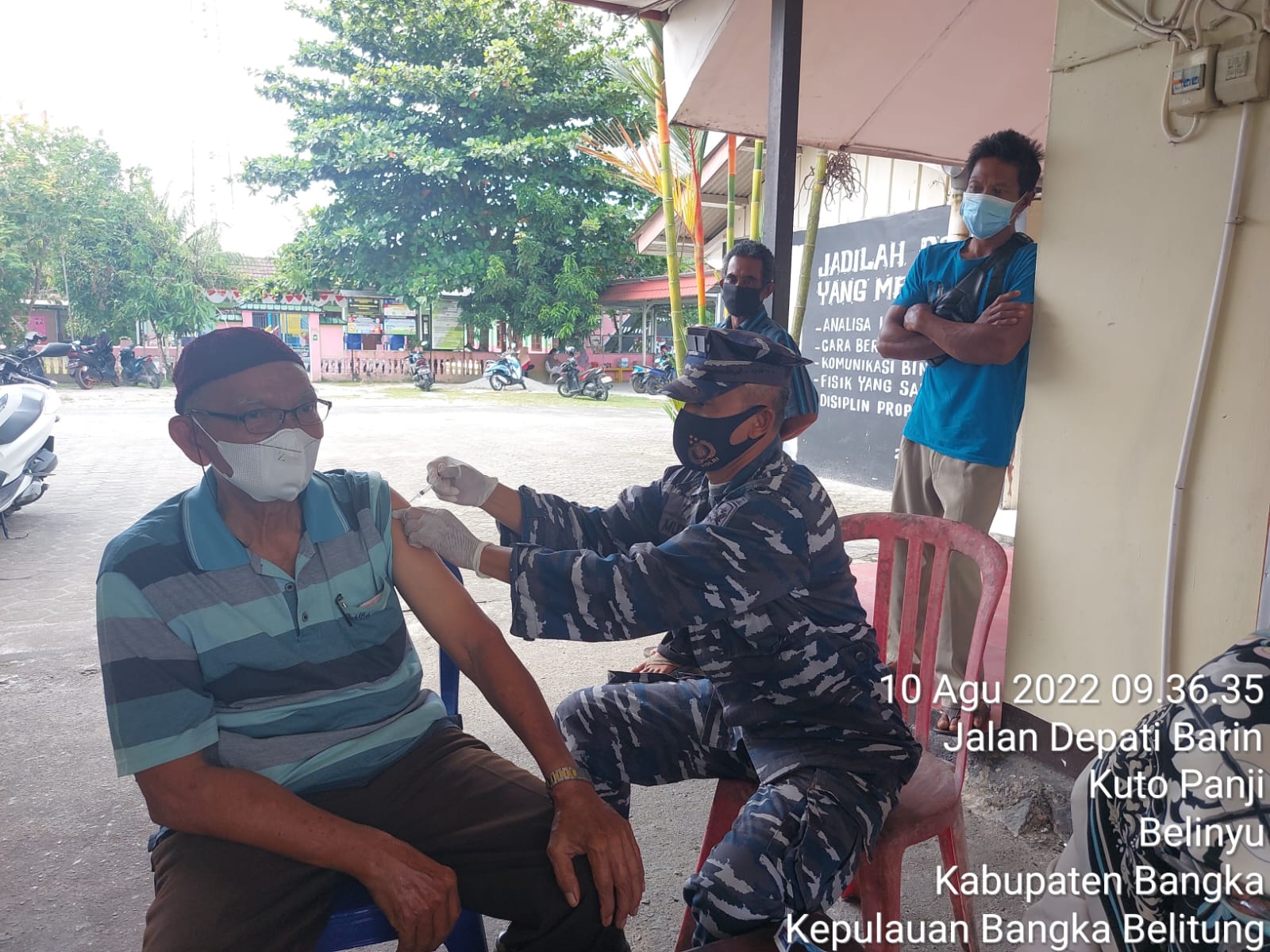 KeizalinNews.com Bangka Belitung — jajaran Lantamal III Jakarta Lanal Bangka Belitung terus berupaya memutus mata rantai Virus Corona dan mencegah masuknya varian baru Covid-19 seperti subvarian Omicron BA.4 dan BA.5 dalam serbuan Vaksinasi maritim melalui Balai Kesehatan yang bekerjasama dengan Puskesmas Belinyu melaksanakan serbuan Vaksinasi di Mako Polsek Belinyu, Rabu (10/08/2022).