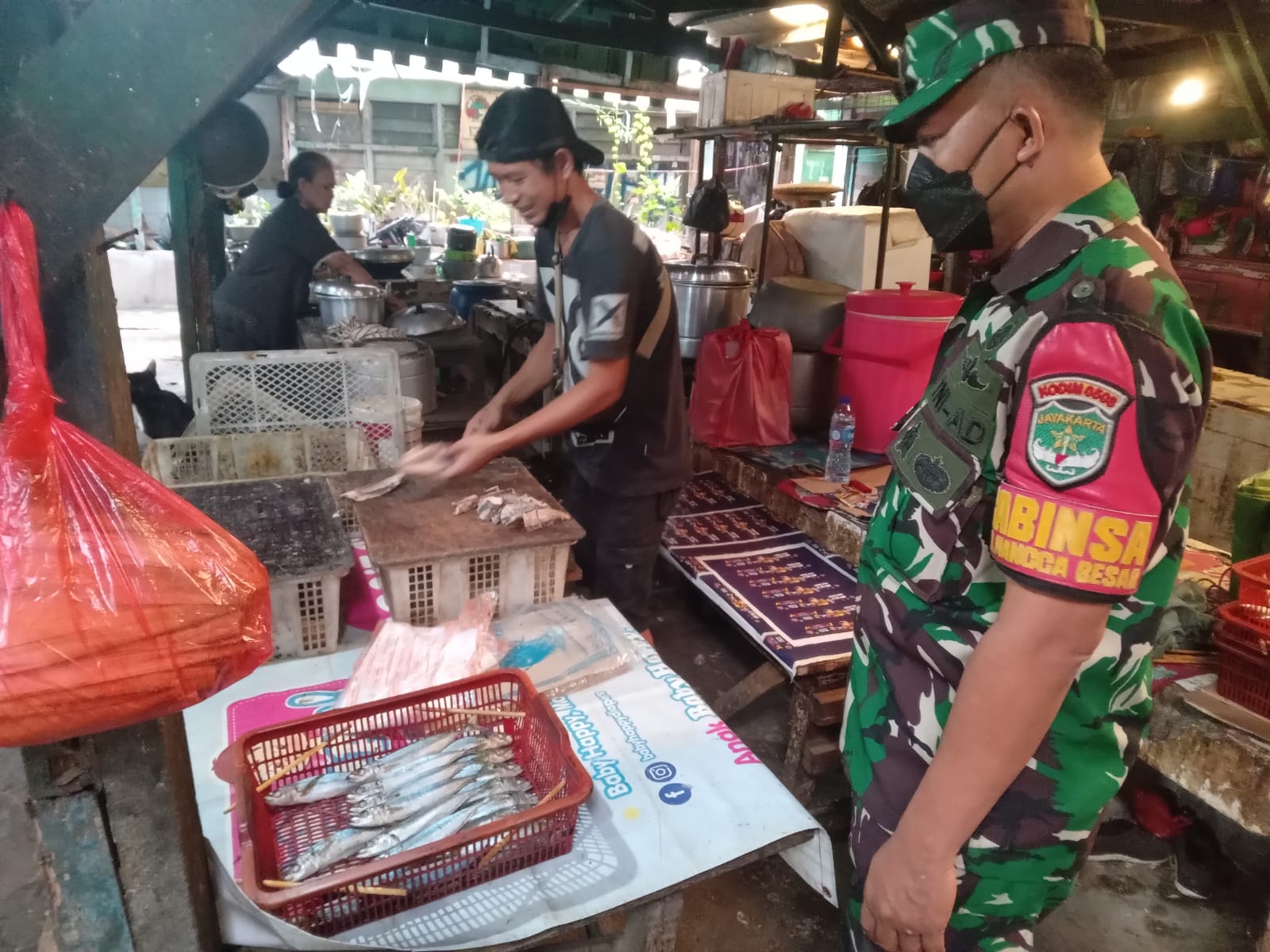 “Pemantauan ini guna mengantisipasi adanya pedagang yang nakal sehingga menaikkan harga bahan pokok di tengah pandemic yang kita hadapi saat ini.”kata Serka Rudiyanto.