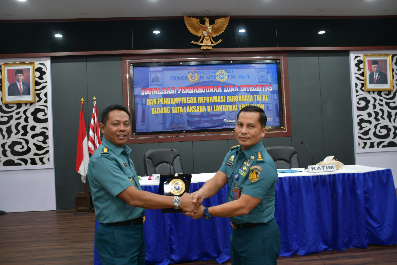 “Kegiatan Sosialisasi Reformasi Birokrasi di Lantamal I dimaksudkan untuk memberi dorongan pembangunan Zona Integritas dan pemantapan pada Satker Jajaran Lantamal I agar dapat meraih predikat sebagai Satker ZI menuju Wilayah Bebas dari Korupsi (WBK) atau Wilayah Bebas Birokrasi Bersih dan Melayani (WBBM),” ujar Kolonel Gemma.