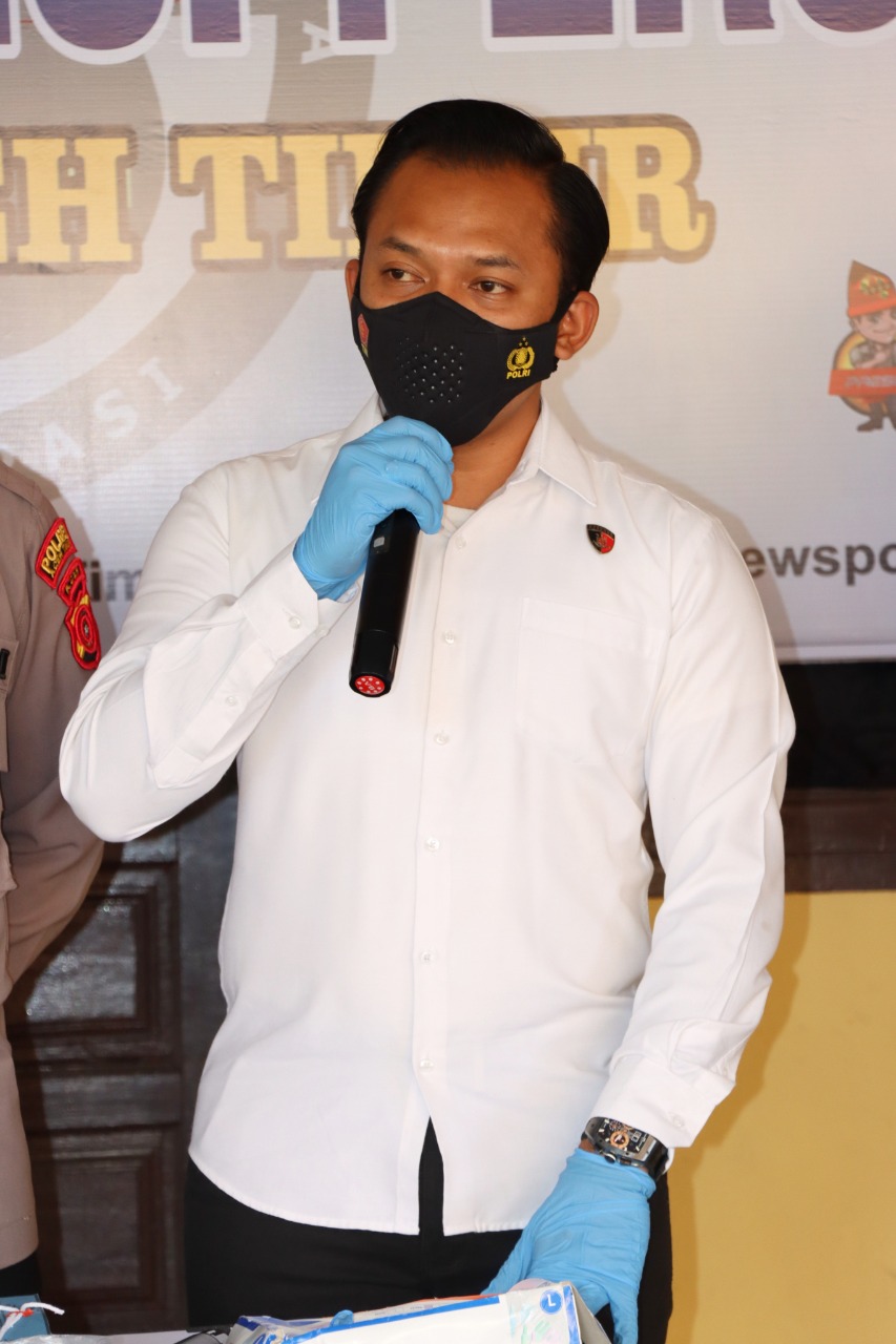 “Atas tindakan pelaku, keduanya kami persangkakan melanggar pasal 55 Undang-undang Nomor 22 Tahun 2001 tentang Minyak dan Gas Bumi sebagaimana telah diubah dalam paragraf 5 pasal 40 Undang-undang Nomor 11 Tahun 2020 tentang cipta kerja, dengan ancaman hukuman penjara paling lama enam tahun dan denda paling tinggi Rp. 60 Miliar.” Terang Kasat Reskrim Polres Aceh Timur AKP Miftahuda Dizha Fezuono, S.I.K.