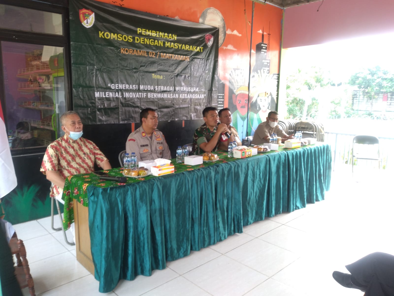 Komsos dengan perwakilan Tokoh Masyarakat, Tokoh Agama, Tokoh Pemuda dan Komponen masyarakat lainnya ini mengambil tema “Generasi Muda Sebagai Wirausaha Millenial Inovatif Berwawasan Kebangsaan”, Danramil 02/Matraman Kapten Arm Ahmad Budiman, S.Sos.,M.Si, mengatakan, pemahaman Wawasan kebangsaan terhadap generasi muda adalah hal mutlak yang harus diketahui oleh Generasi muda, apalagi di era Digital seperti sekarang ini.