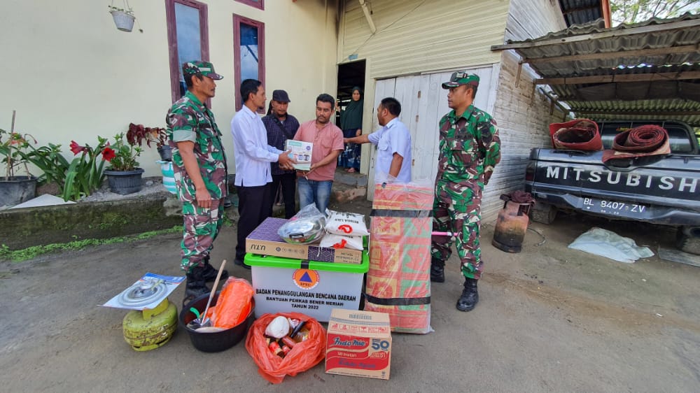 Komandan Kodim 0119/BM Letkol Inf Eko Wahyu Sugiarto mengatakan bantuan yang diserahkan berupa, beras, Indomie, kompor, tabung dan selang gas serta peralatan dapur secara lengkap.