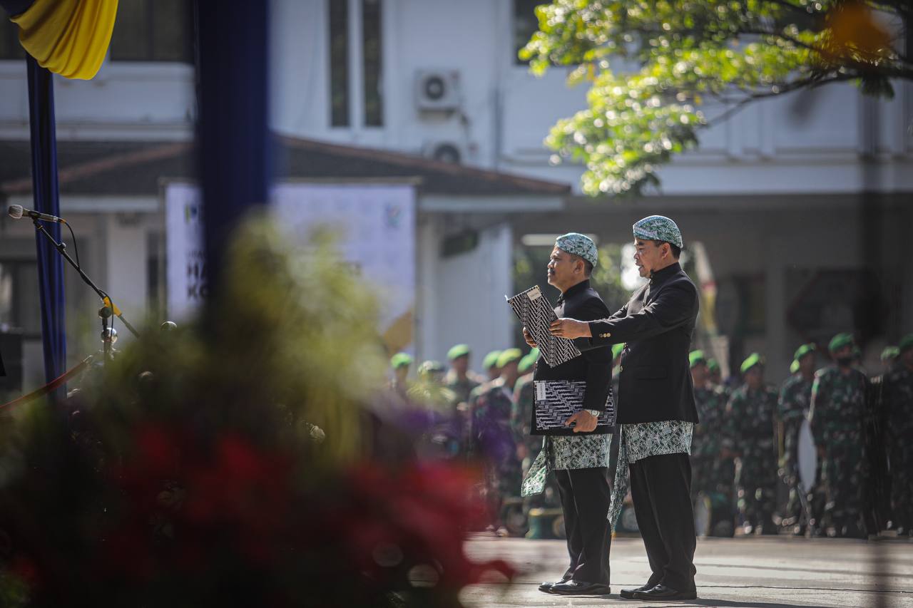 Dilanjutkan pembacaan Pancasila oleh Kepala Badan Kesbangpol, Bambang Sukardi dan pembacaan UUD 1945 oleh Kepala Disdukcapil, Tatang Muchtar.