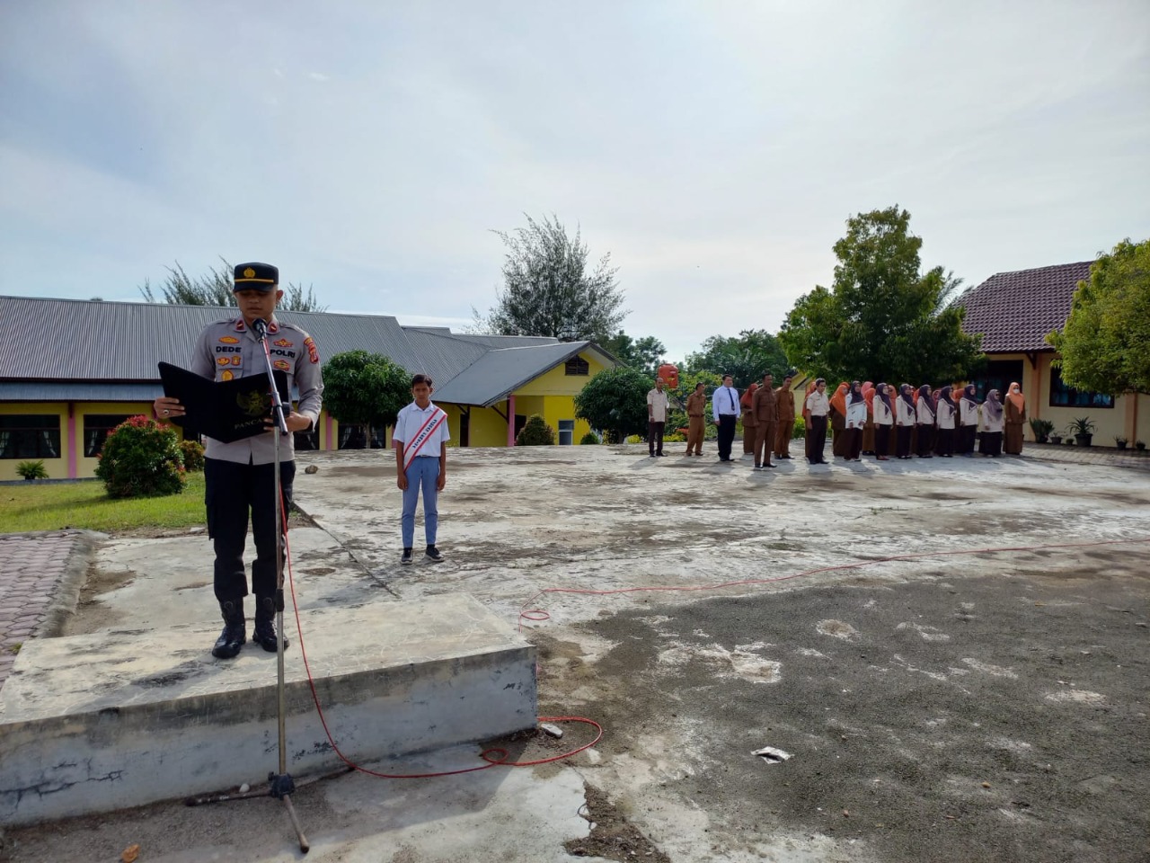KeizalinNews.com Acèh Timur Kapolsek Peureulak Barat Ipda Dede Moerdhany, S.H. pada Senin, (26/09/2022) pagi menjadi pembina upacara di SMKN 1 Peureulak yang dihadiri oleh kepala sekolah, guru dan staf dan diikuti 153 siswa dan siswi SMKN 1 Peureulak.
