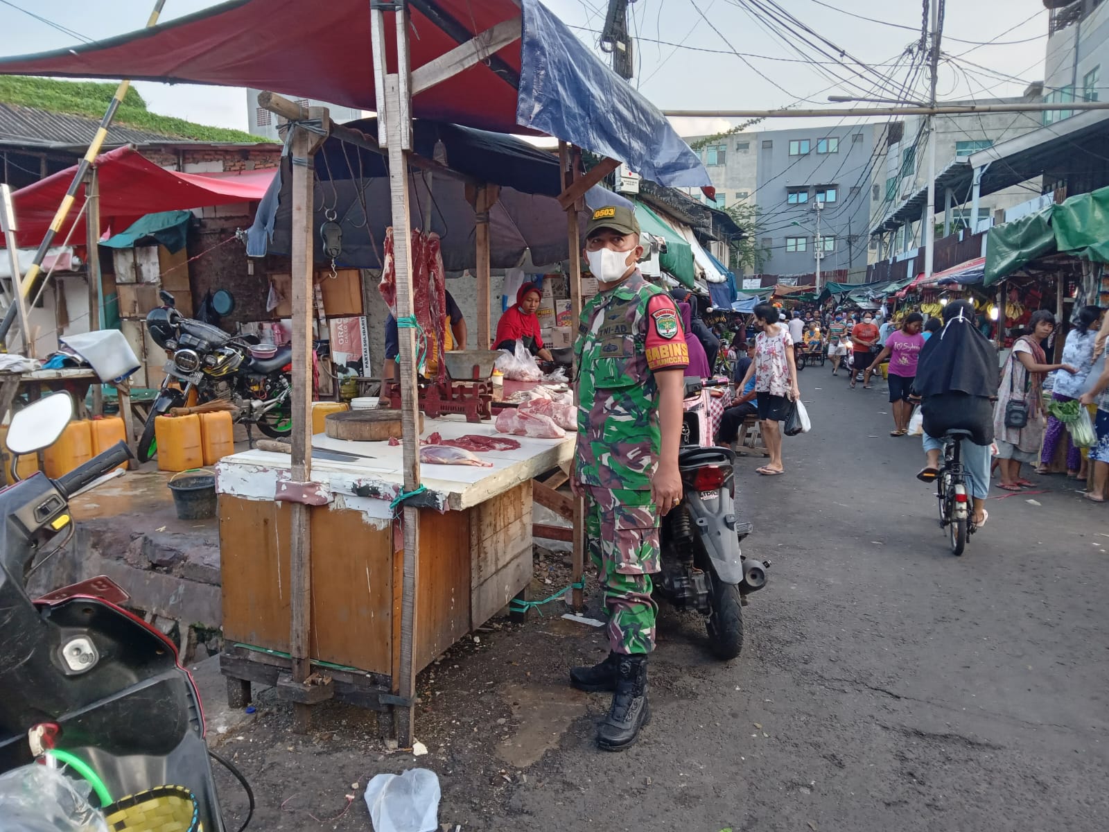 KEIZALINNEWS Kodam Jaya, Jakarta Barat – Babinsa Koramil 01/Tamansari Kodim 0503/JB, Serka Rudiyanto melakukan pemantauan di PD Pasar Pecah Kulit Jalan Mangga Besar IX, RT. 07/01, Kel. Pinangsia, Kec. Tamansari Jakarta Barat. Kamis 06 Oktober 2022.