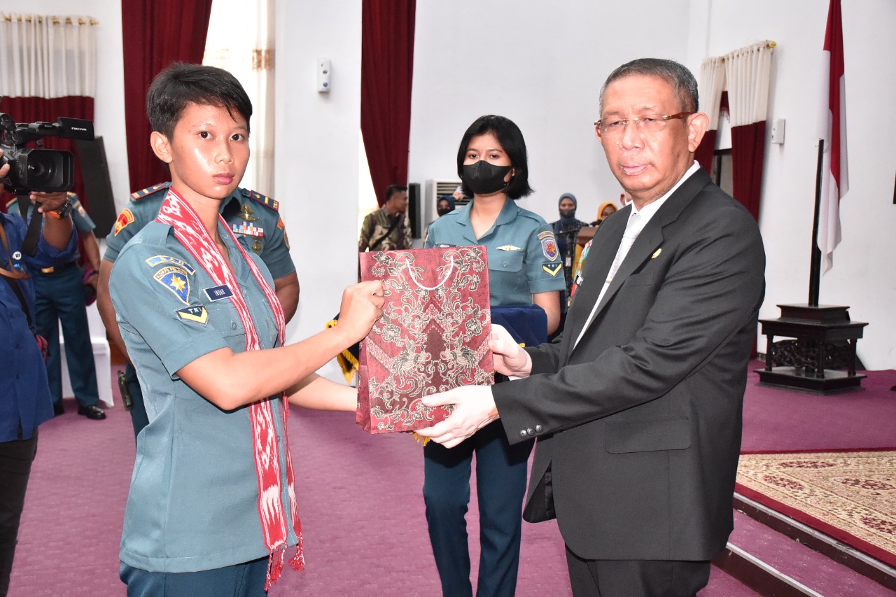 Kegiatan dilanjutkan dengan Penyerahan cinderamata dari prajurit TNI AL kepada Gubernur Kalbar dan Danlantamal XII kemudian foto bersama
