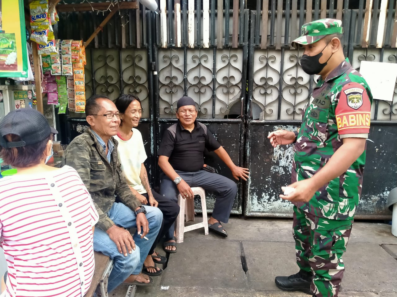 Melalui komsosnya, Babinsa meminta dan menekankan kembali kepada warga agar Tetap tingkatkan keamanan dan ketertiban lingkungan, serta selalu patuhi protokol kesehatan dan juga mengajak warga untuk turut serta mengkampanyekan kepada masyarakat lainnya guna memerangi dan memutus penyebaran virus Covid-19.