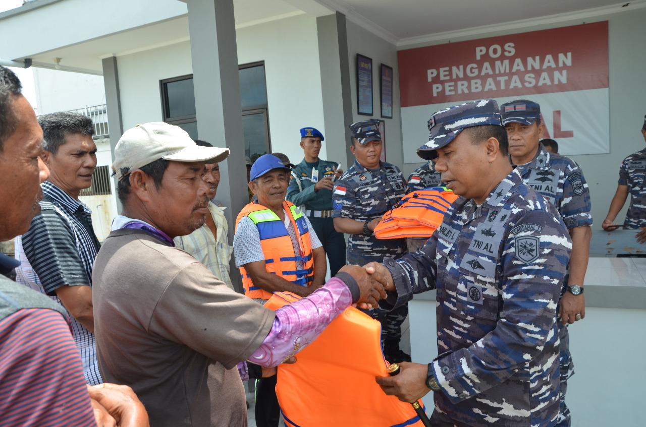 Pada kesempatan itu juga, Danlanal Dumai memberikan bantuan 50 buah alat keselamatan di laut berupa life jacket (pelampung) kepada nelayan pesisir yang tinggal disekitar Pos TNI AL Tanjung Medang.