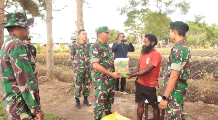 KeizalinNews.com Nabire — Kunjungan Kepala Staf Korem 173 / Praja Vira Braja selaku Wadanlat Dalam rangka meninjau Latihan Uji Siap Tempur Tingkat Kompi Yonif Raider Khusus 753 / Arga Vira Tama & Pemberian Bantuan Kepada Masyarakat yang berada Disekitar Daerah Latihan.