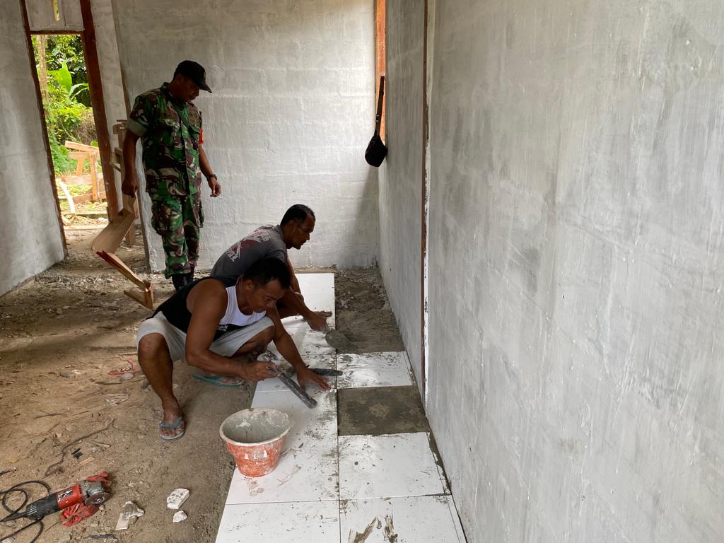 “Walaupun cuaca tidak menentu, anggota Satgas TMMD bersama warga tetap terus bekerja tidak mengenal lelah dan hari ini pemasangan keramik lantai rumah warga sudah mulai dikerjakan,” ucapnya.
