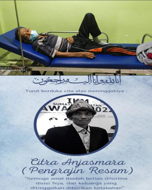 Keizalinnews.com, PALI–BumiAyu berduka menyelimuti desa Bumiayu kecamatan tanah abang kabupaten Penukal Abab Lematang Ilir (PALI) Provinsi Sumatera Selatan, setelah salah seorang putra terbaiknya pengrajin resam kabupaten PALI, yakni Citra Anjasmara Bin Nibun, (53 tahun) meniggal dunia, Rabu (2/11). Pria asal Bekasi Jakarta Selatan, ini dikenal sebagai seorang perajin resam Berbagai penghargaan dari pemerintah didapatkan almarhum Citra Anjasmara, Bahkan hasil karya nya sering dijadikan cindera mata bagi tamu- tamu yang berkunjung kecandi Bumiayu PALI,