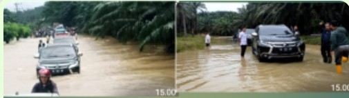 Didekat lokasi ini, rombongan Ir Mahyuddin yang turut didampingi oleh Kepala BPBD Aceh Timur beserta tim dari Satpol PP Aceh Timur dan Kapolsek Simpang Jernih menerobos genangan banjir yang telah menutupi badan jalan dan pemukiman warga.