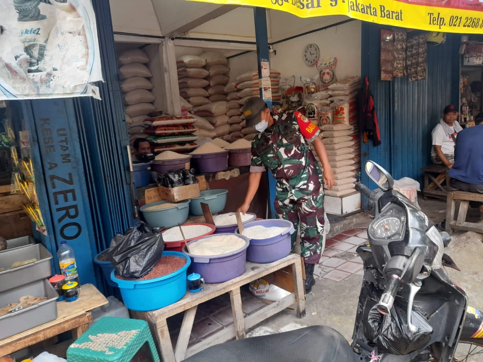 KEIZALINNEWS Kodam Jaya, Kodim 0503/JB – Babinsa Koramil 01/Tamansari Kodim 0503/JB, Sertu Rusnanto melaksanakan pemantauan harga sembako di PD Pasar Pecah Kulit Jalan Mangga Besar XI, Rw. 01, Kel. Pinangsia Kec Tamansari, Jakarta Barat. Senin 07 November 2022.