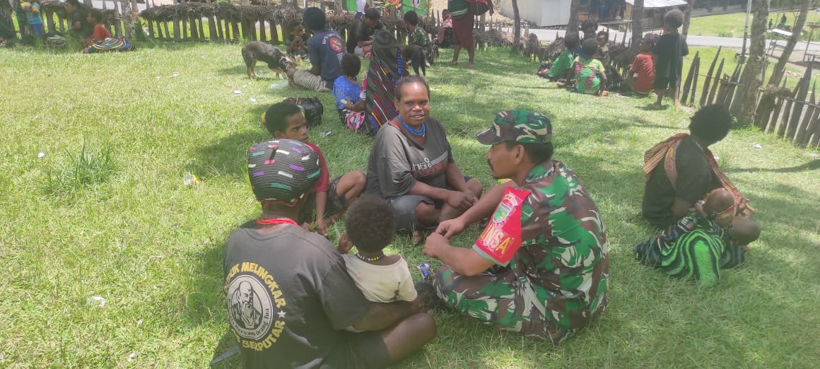 KeizalinNews.com Tingginambut — Dalam rangka meningkatkan keakraban di wilayah binaanya, Babinsa Posramil 1714-06/Tingginambut Serda Heriyanto melaksanakan kegiatan komunikasi sosial (Komsos) dengan Warga Bertempat Di Kampung Yonggun, Distrik Tingginambut, Kabupaten Puncak Jaya, Kamis (10/11/2022).