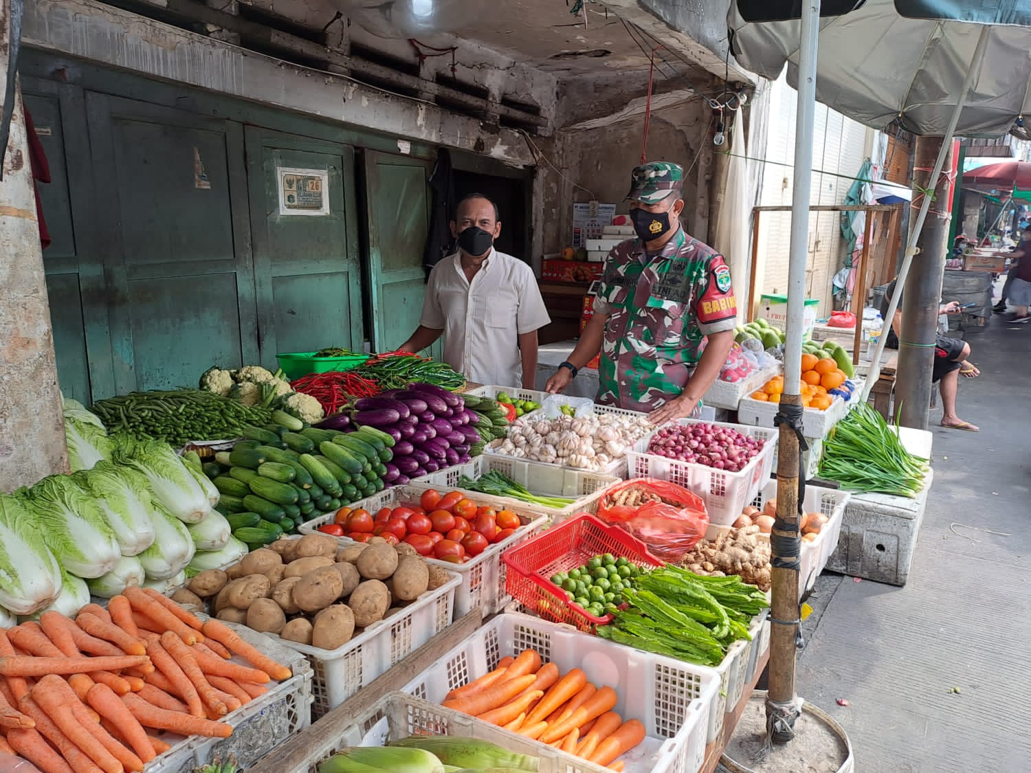 KEIZALINNEWS Kodam Jaya, Kodim 0503/JB – Babinsa Koramil 01/Tamansari Kodim 0503/JB, Sertu Supriyanto yang bertugas sebagai Babinsa di Kelurahan Krukut melaksanakan Pemantauan Sembako, di Pasar Tradisional Krukut, Jalan Pasar Krukut, Rw. 02, Kel.Krukut, Kec. Tamansari Jakarta Barat. Rabu, 16 November 2022.