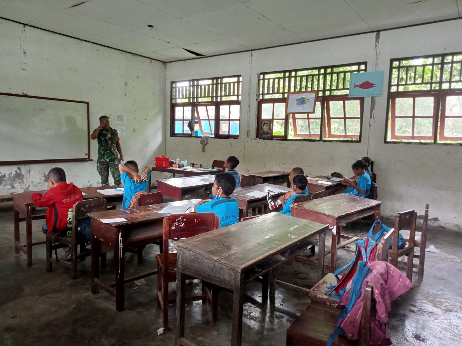 KeizalinNews.com Yapen — Sebagai wujud kepedulian aparat kewilayahan terhadap pendidikan bagi anak-anak generasi muda yang ada diwilayah binaannya, Sertu Yekin Bantang Babinsa Koramil 1709-03/Warbah Kodim 1709/Yawa, mengajar matematika bagi anak-anak murid kelas 4 di SDN Nobaro Kampung Nubuai Distrik Urei Faisei Kabupaten Waropen, Sabtu (19/11/2022).