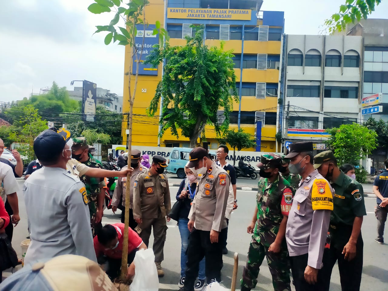 KEIZALINNEWS Kodam Jaya, Kodim 0503/JB – Sebanyak enam personil Babinsa Koramil 01/Tamansari yang turut serta apel gabungan Tiga Pilar dalam rangka kerja bakti dan penanaman pohon di Kawasan Jalan Mangga Besar Raya Kec.Tamansari Jakarta Barat. Sabtu, 19 November 2022.