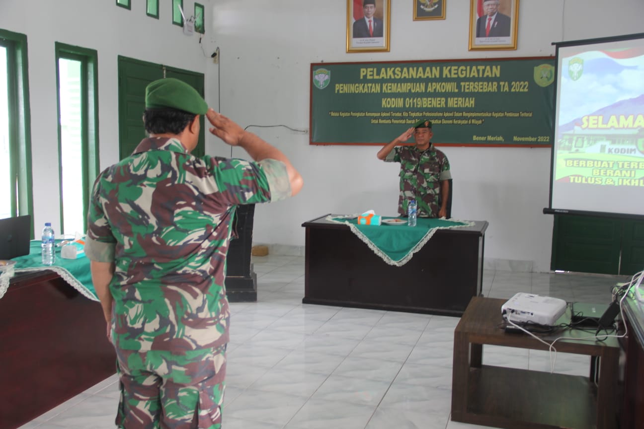 Keizalinnews.com|Redelong– Guna meningkatkan Profesionalisme prajurit, khususnya Babinsa, melaksanakan pembinaan teritorial di lapangan, Kodim 0119/BM Gelar Katpuan Apkowil Tersebar, yang bertempat di Aula Makodim Jln Jalur Dua Desa Wonosobo Kecamatan Wih Pesam Kabupaten Bener Meriah” Selasa 22 November 2022