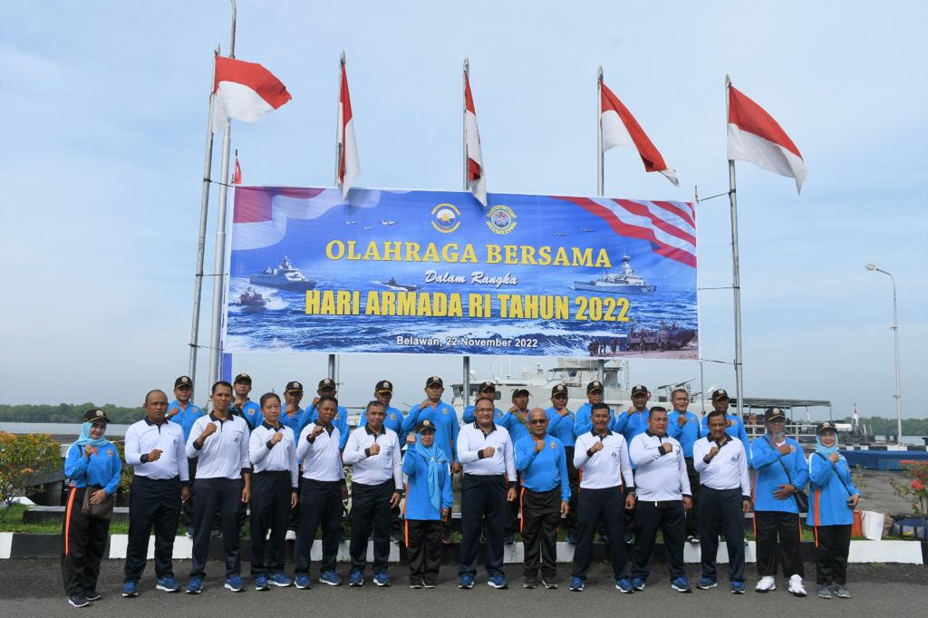 KeizalinNews.com Belawan — Dalam rangka menyambut peringatan Hari Armada RI Tahun 2022 yang jatuh pada tanggal 5 Desember mendatang, Lantamal I Belawan menggelar olahraga bersama, bertempat di Lapangan Apel Markas Komando Lantamal I, Selasa (22/11/2022).