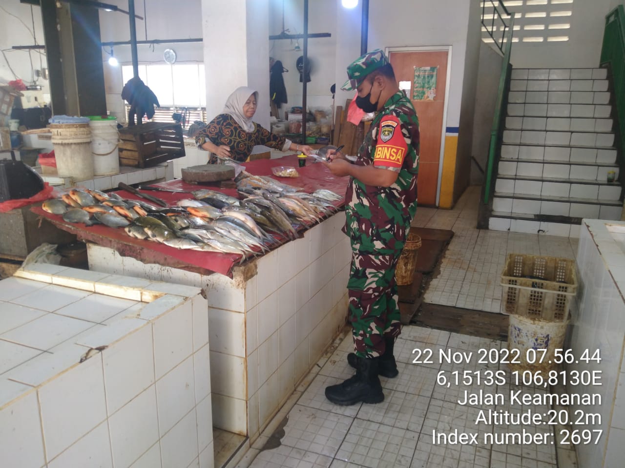 KEIZALINNEWS Kodam Jaya, Kodim 0503/JB – Koramil 01/Tamansari Kodim 0503/JB rutin setiap harinya menurunkan personilnya untuk mengadakan pemantuan perkembangan harga sembako di pasar-pasar yang ada di wilayah Tamansari.