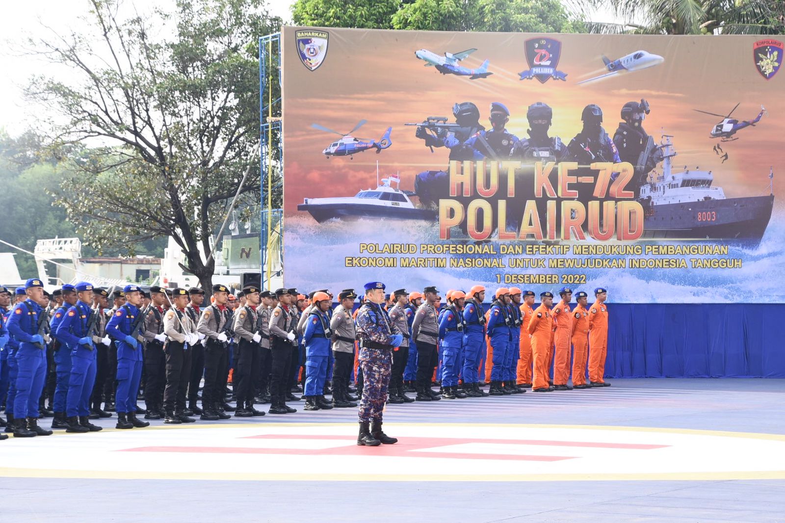 Upacara dipimpin langsung Kepala Badan Pemelihara Keamanan (Kabaharkam) Polri Komjen Pol. Dr. Drs. Arief Sulistyanto, M.Si., dengan mengangkat tema “ Polairud Profesional dan Efektif dalam mendukung pembangunan ekonomi Maritim Nasional untuk mewujudkan Indonesia Tangguh”.