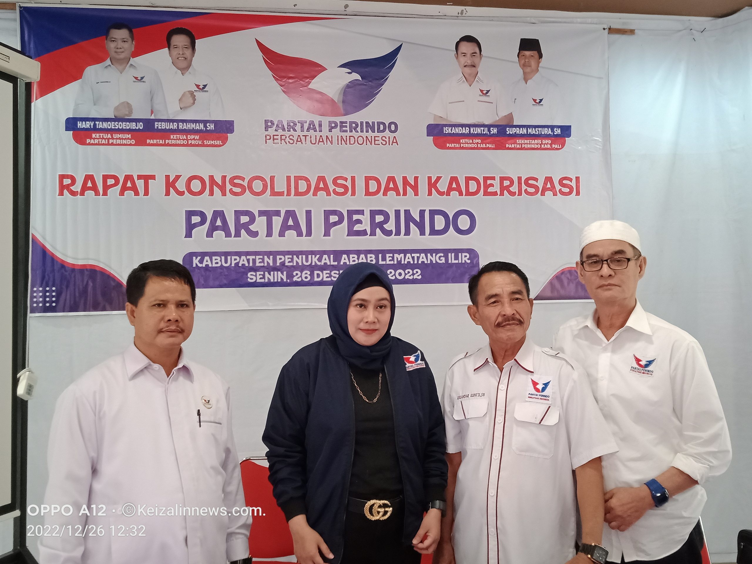 Keizalinnews.com // PALI–,Dewan Pimpinan Daerah (DPD), Partai Perindo, Kabupaten Penukal Abab Lematang Ilir (PALI), mengajar rapat Konsolidasi dan Kaderisasi bertempat lantai dua, Rumah makan Sejatera, Kelurahan Handayani Talang Ubi PALI, Senin (26/12/2022),