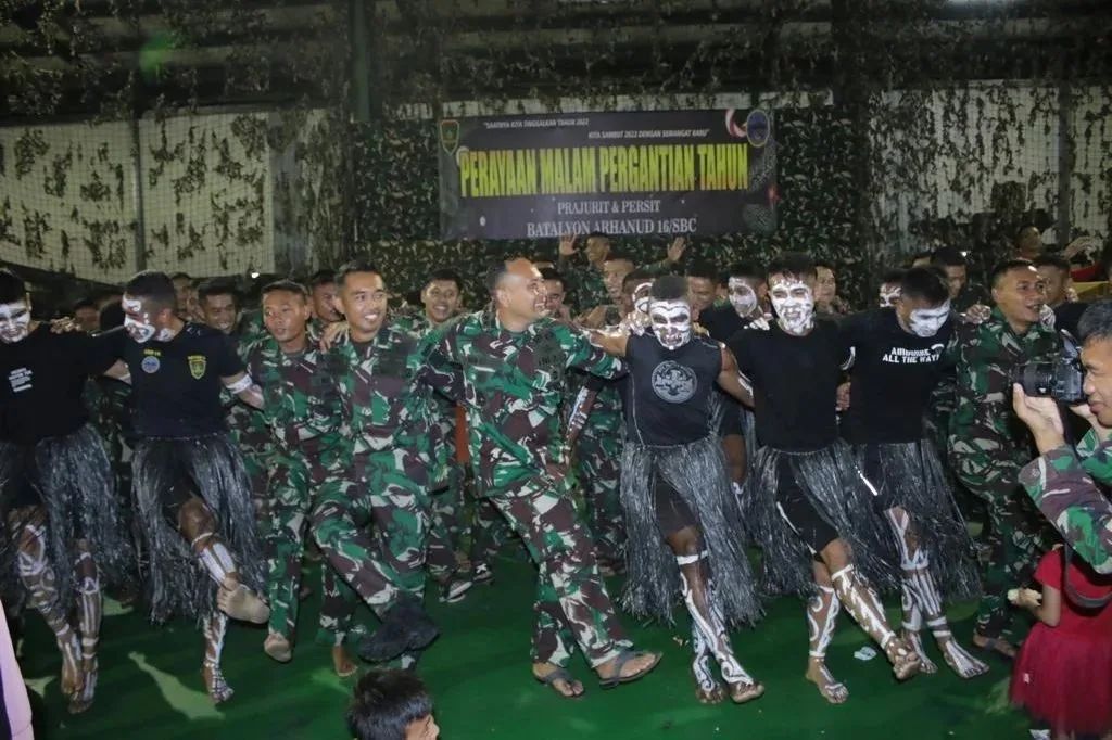 Komandan Batalyon Arhanud 16/SBC Letkol Arh Imam Musahirul, S.H., M.I.P. beserta istri turut hadir dan memeriahkan perayaan malam pergantian tahun ini. Dalam sambutannya beliau mengucapkan selamat Tahun Baru 2023 untuk seluruh kelurarga besar Maleo. Beliau pun merasa kagum akan semarak malam tahun baru kali ini dan bangga atas penampilan kreatif dari prajurit maupun persit.