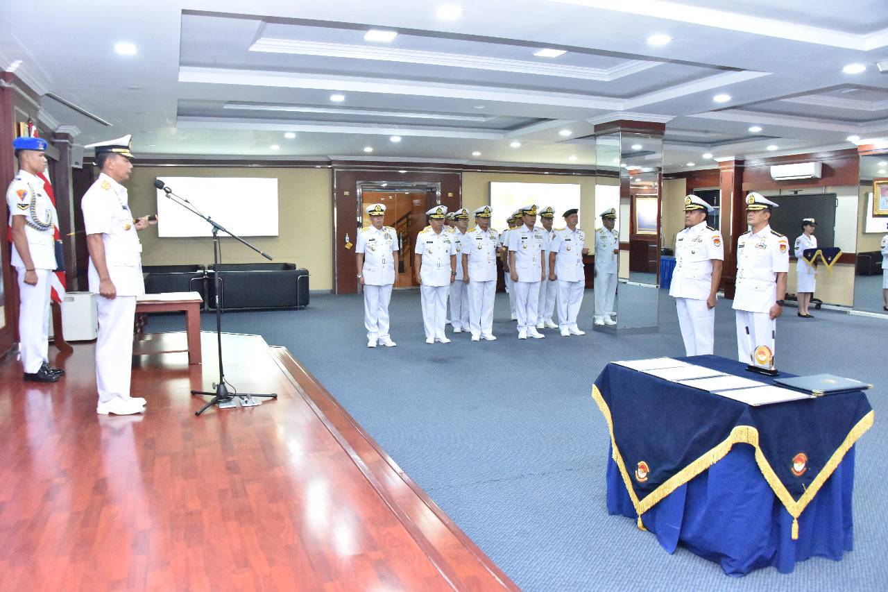 KeizalinNews.com Jakarta —Panglima Komando Armada Republik Indonesia (Pangkoarmada RI) Laksamana Madya TNI Heru Kusmanto, memimpin acara Pengambilan Sumpah, Penandatanganan Pakta Integritas dan Pengukuhan Jabatan Kepala Dinas Potensi Maritim (Kadispotmar) Koarmada RI dan Kepala Dinas Hukum (Kadiskum) Koarmada RI, di Lounge Matjan Kumbang Mako Koarmada RI, Jakarta Pusat, Rabu (4/1/2023).