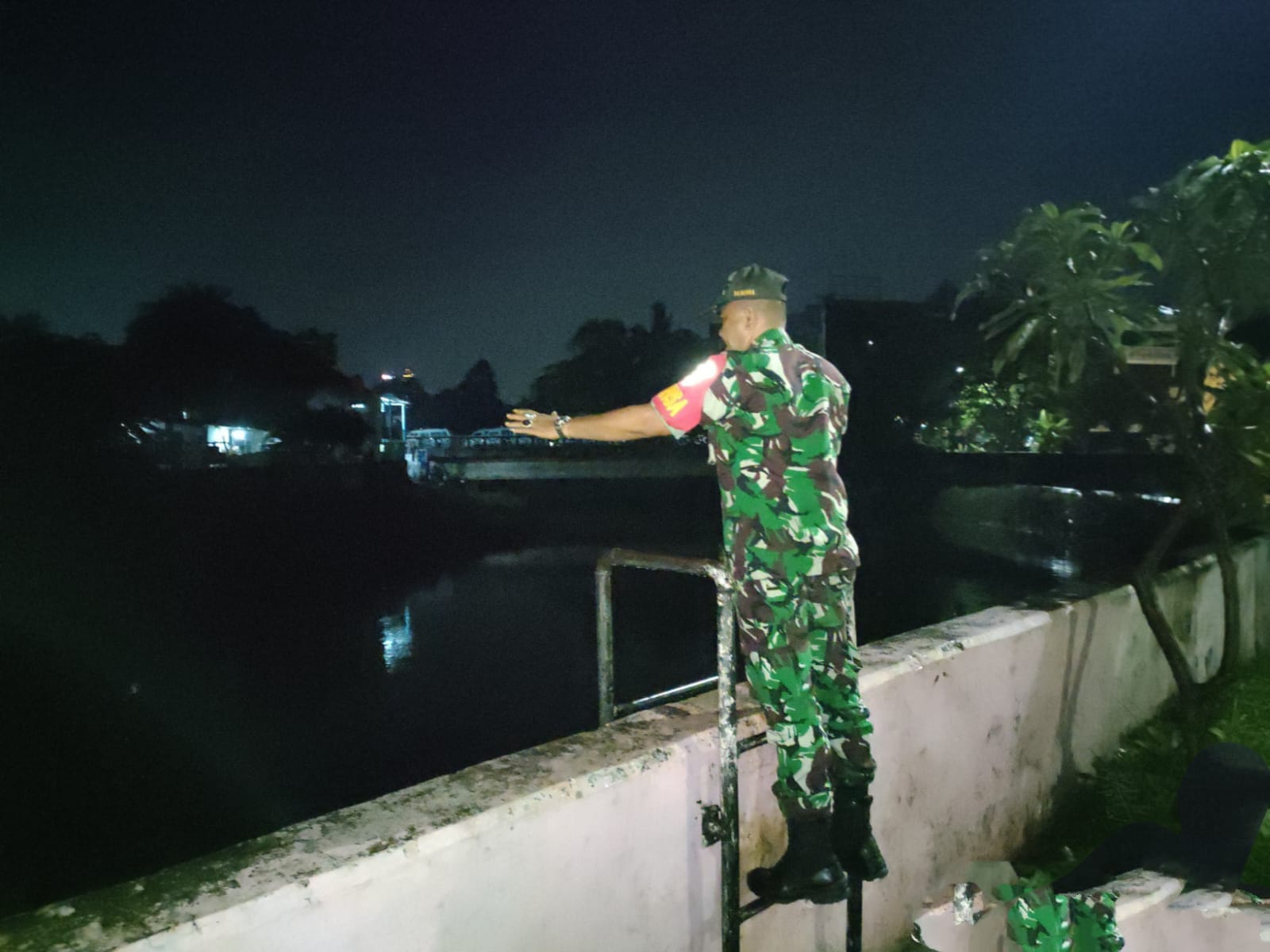 KeizalinNews Kodim 0505/Jakarta Timur – Peltu Waridi bersama Serda Ali Ferdi Babinsa Koramil 01/Jatinegara melaksanakan pemantauan arus Sungai Ciliwung di Jln. Jatinegara Barat Kelurahan Kampung Melayu Kecamatan Jatinegara, Kamis (05/01/2023)