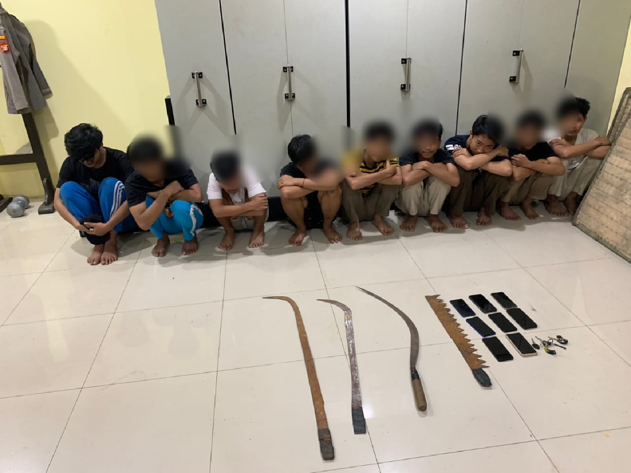 “Empat buah senjata tajam berbagai jenis dan ukuran, tiga buah unit sepeda motor, delapan unit handphone,” tutur dia.